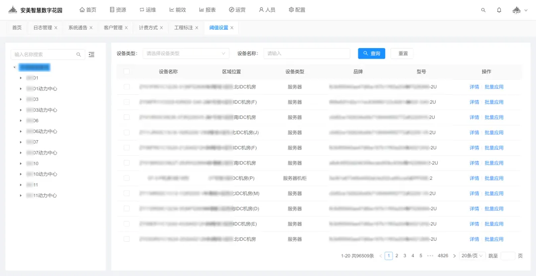 平台利用数字孪生技术,对关键基础设施进行1:1建模搭建,告警可视化云图让客户能直观查看当前整个数据中心的告警情况和告警等级。当告警发生时可实时定位到发生告警的设备,并呈现出设备的历史信息(如购入记录、维保记录、负载情况等),帮助运维人员更直观的了解设备在数据中心的运行状况。